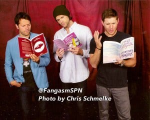 Fangasm Supernatural Fangirls – The true life adventure story of two women who fell head over heels in love with Supernatural and never looked back. Or the misadventures of Lynn and Kathy – online, at conventions, and behind the scenes on the set of Supernatural. I swear this all really happened! (Yes, even those moments in Jared’s trailer…) Click Here to Order!