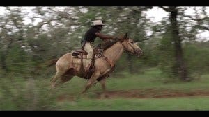At any rate, a sugar cube and a few deep breaths and Liam is up and riding comfortably and Ol’ Kenny is happy to have him on board and I’m happy because once again, horses on my TV screen!