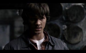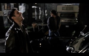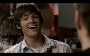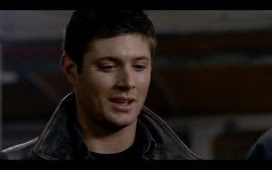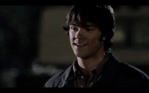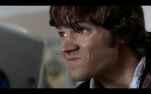 Dean finds this inexplicably amusing too. The boys do a lot of smiling and laughing in this episode, and I realize we don’t often get to see that, so I’m grateful.