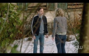 The B story line was much calmer but was also interesting and well done. Castiel meets with Anael in a picturesque diner in the snow (I thought it was picturesque, Anael clearly didn’t. Also, she’s so sassy and I’m here for it.)