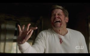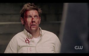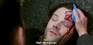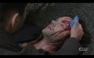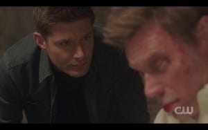 Jack arrives to find Dean bent over his brother, still vainly holding a cloth to his head, looking like he’s in shock.